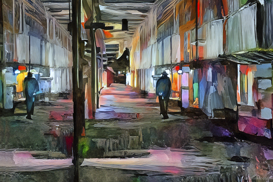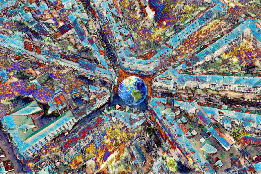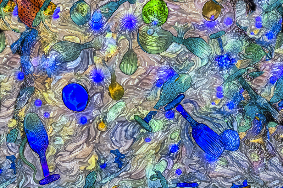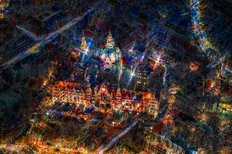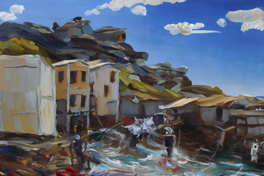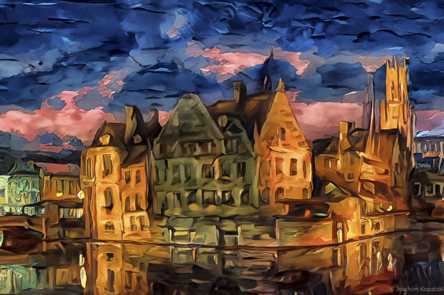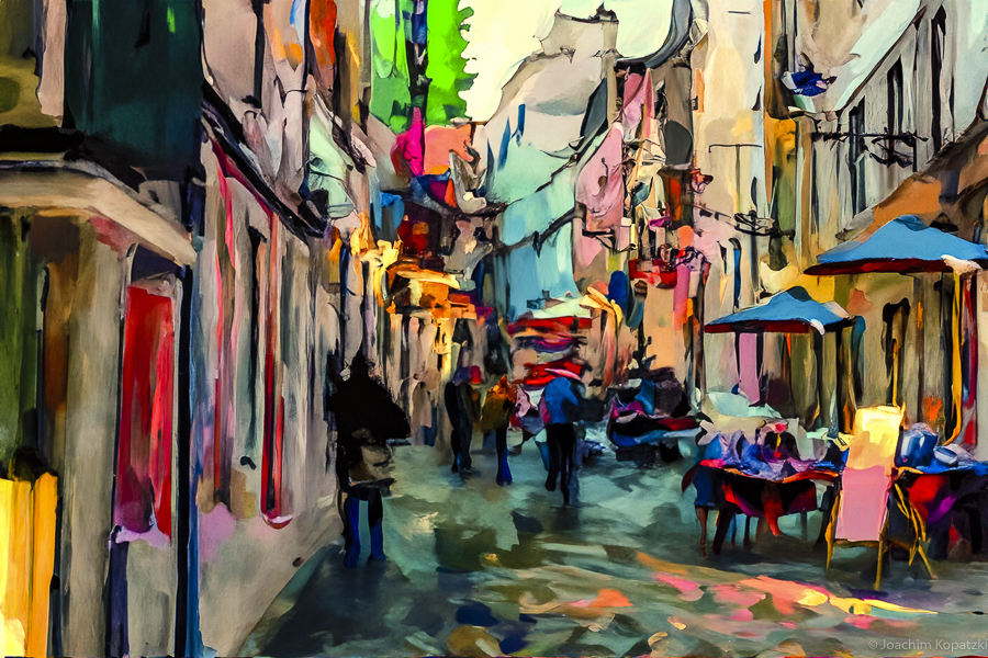 Fotografien, die zu Grafiken oder Gemälden werden: Digitale Art. Grundlage sind Fotos, die mit verschiedenen Techniken digital bearbeitet sind, dabei sind z.B. für ein Werk auch mehrere Fotografien verwendet worden. Auch Luftaufnahmen, die zu digitalen Bilder wurden, sind dabei.